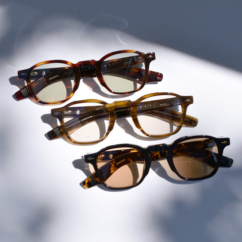 JMM のコレクションの中でも、ブランド始動当初から展開されているこのシェイプは、1940年代のフランスで作られていた伝統的な “Parisian(パリジャン)” をオマージュした、小ぶりのパント型フレームです。当時のフレンチヴィンテージに見られる、控えめなサイズ感と品のある曲線をベースに、JMM らしい造形の厚みやディテールを加えることで、クラシックと現代性の中間に位置するデザインへとまとめられています。