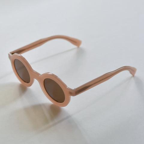 フランス製オーガニックアセテートならではの透明感ある艶と、丁寧な磨きによる滑らかな質感が、顔立ちにやさしく溶け込む仕上がり。